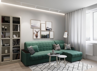 Объемные подлокотники — стильная деталь, отлично вписывающая диван в интерьер современной городской квартиры.