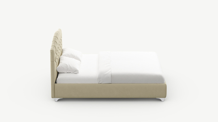 Кровать MOON 1157 создает ощущение праздника. Фигурное изголовье с классической каретной стяжкой формирует торжественный образ кровати, привнося в интерьер элементы дворцового стиля и роскоши.