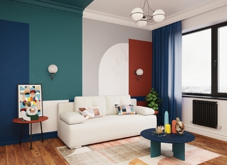 Спинка, выполненная в обивочной ткани, позволяет ставить диван в центре комнаты и зонировать пространство.