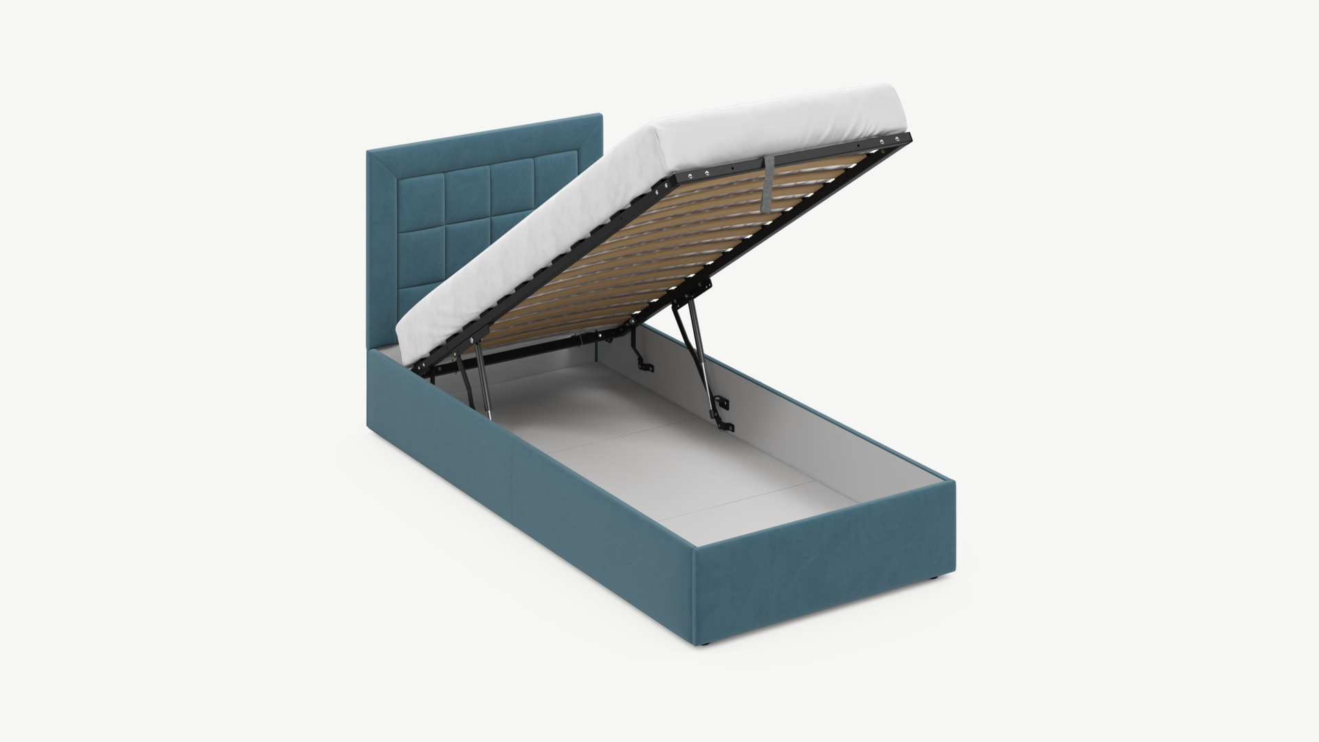 Регулируемый подъемный механизм с газовыми амортизаторами позволяет плавно и бесшумно поднимать и опускать спальное место.