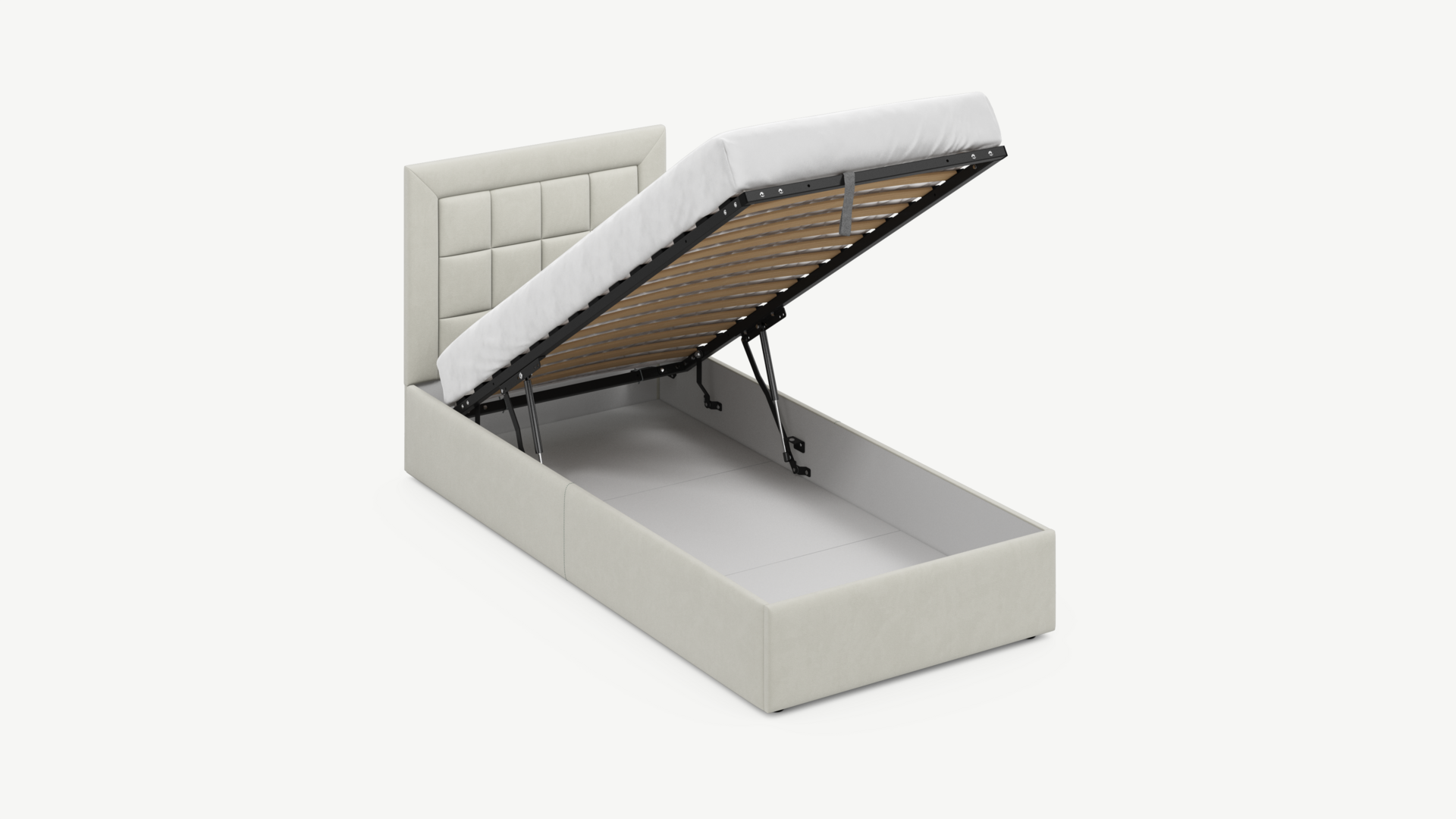 Регулируемый подъемный механизм с газовыми амортизаторами позволяет плавно и бесшумно поднимать и опускать спальное место.