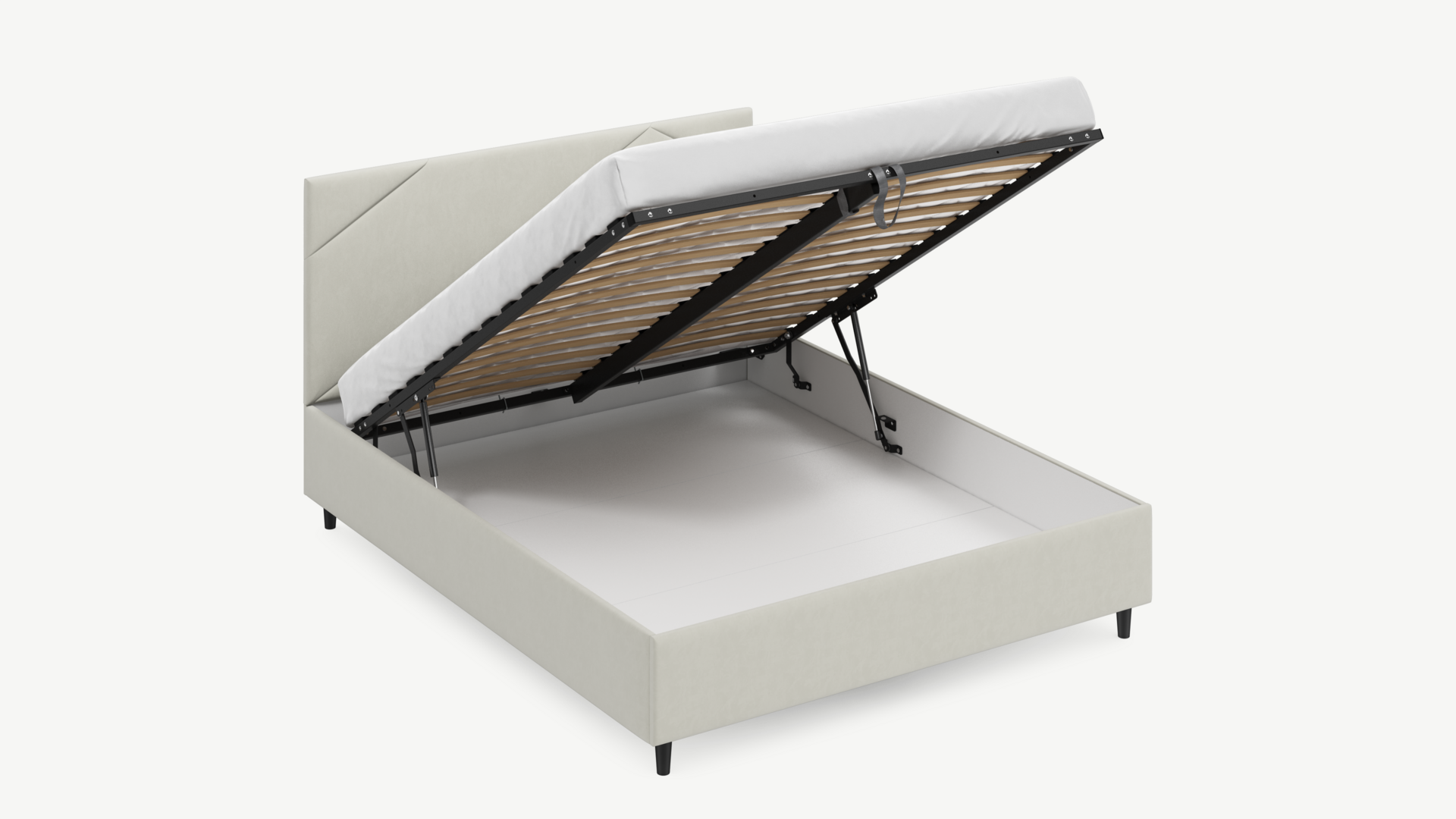 • Скрытая под основанием вместительная емкость без внутренних перегородок позволяет использовать всю площадь подкроватного пространства для хранения вещей.