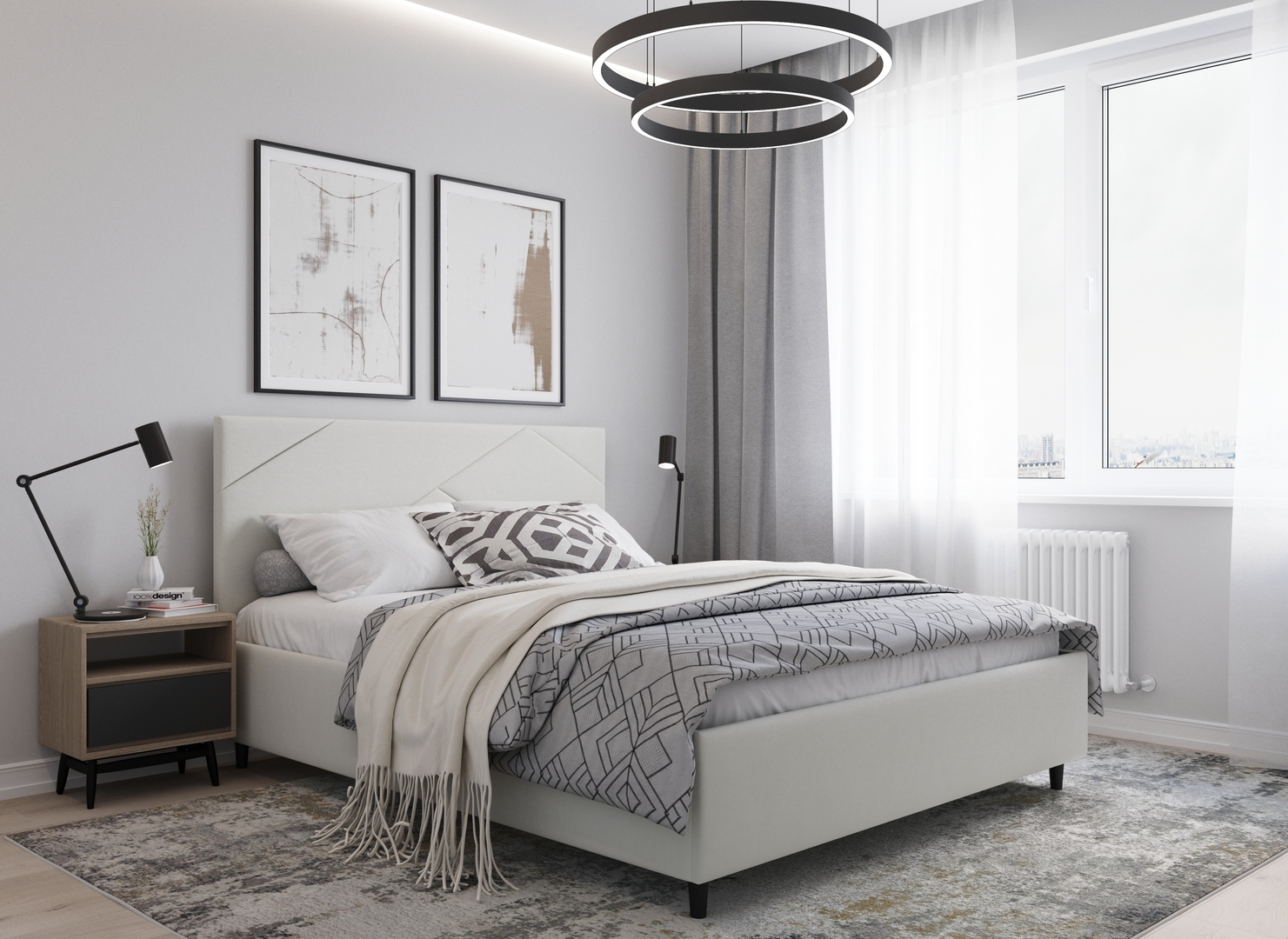 MOON FAMILY 1257 привлекает внимание оригинальным исполнением: широкие полосы ткани эффектно пересекают периметр изголовья, создавая на нем графический орнамент. Лаконичные формы объемных царг создают единый гармоничный образ и фокусируют внимание на центральном текстурном элементе кровати.