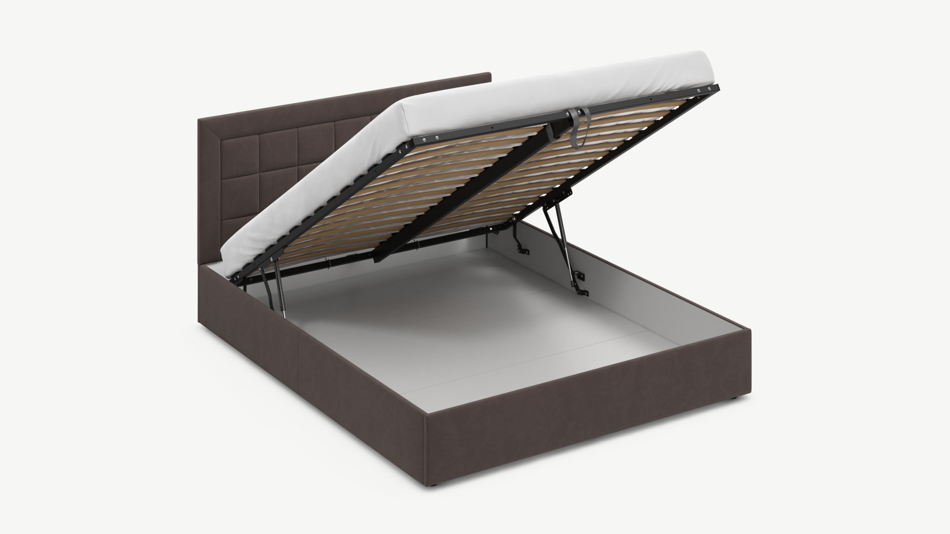 • Скрытая под основанием вместительная емкость без внутренних перегородок позволяет использовать всю площадь подкроватного пространства для хранения вещей.