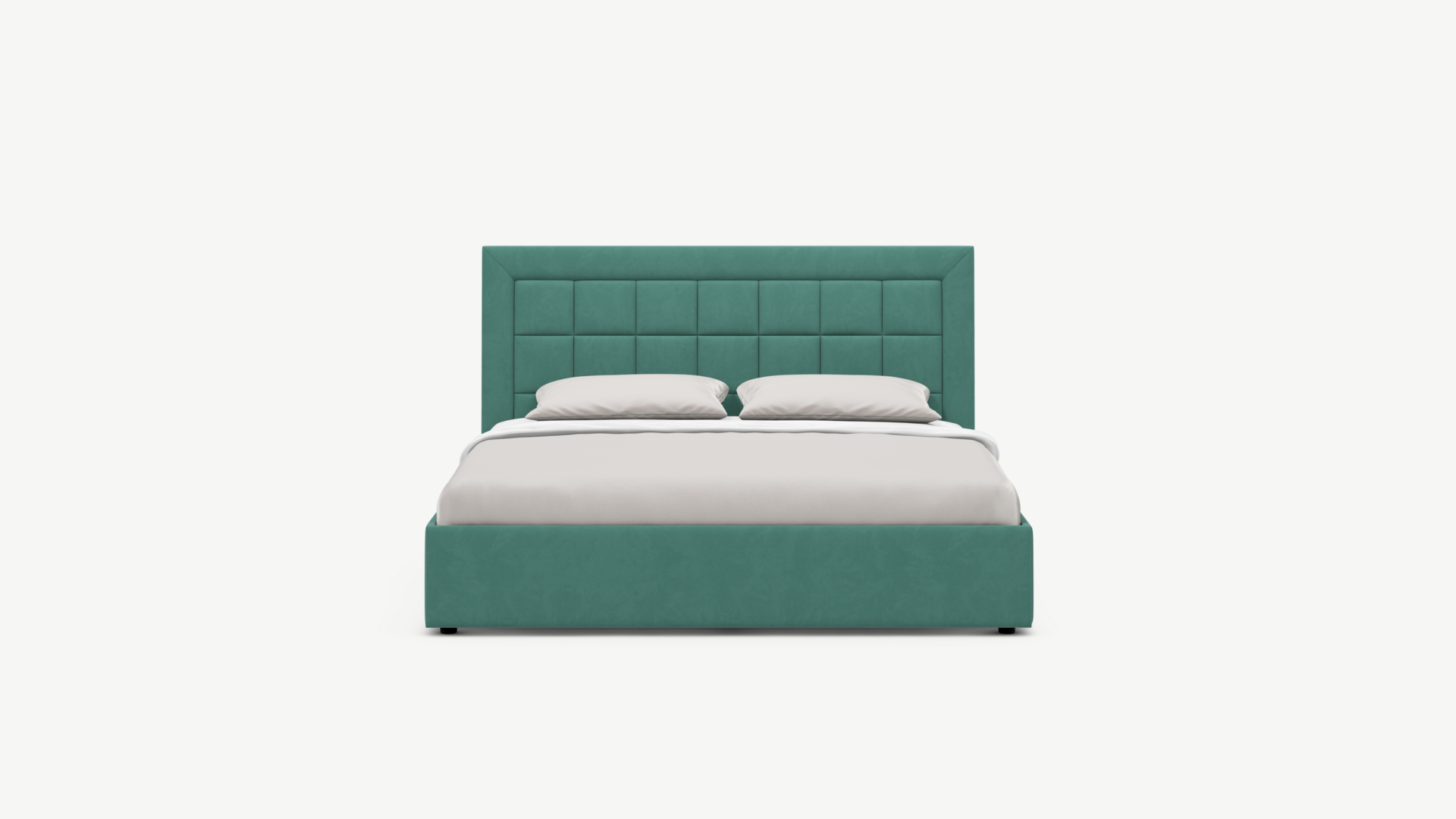 Изголовье декорировано рельефным рисунком стежки в крупный квадрат, получившим особую фактуру за счет глубины шва.