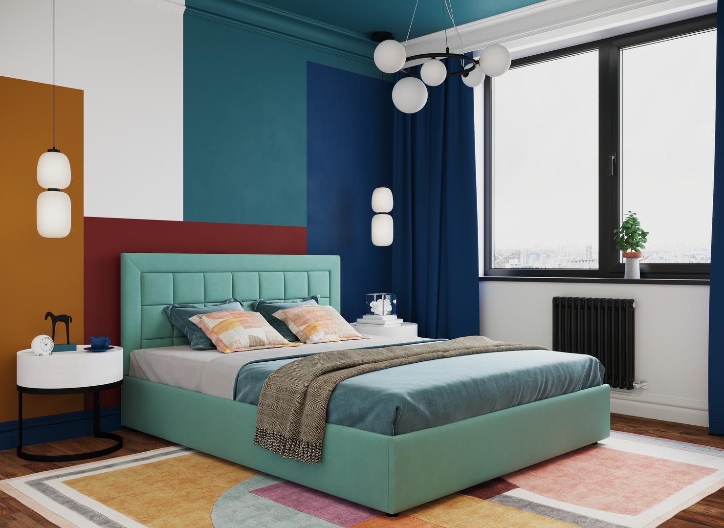 Создать гармоничный интерьер и завершить образ спальни помогут дополнительные аксессуары, например: тумбы, банкетки, подушки.
