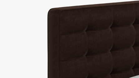 Оформите образ кровати, выбирая обивочный материал, который подчеркнет звучание Вашей спальни и отразит Ваш вкус. Обратите внимание на однотонный гладкий велюр, который усиливает объемную фактуру стежки.