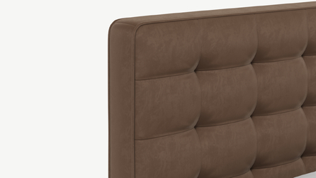 Оформите образ кровати, выбирая обивочный материал, который подчеркнет звучание Вашей спальни и отразит Ваш вкус. Обратите внимание на однотонный гладкий велюр, который усиливает объемную фактуру стежки.