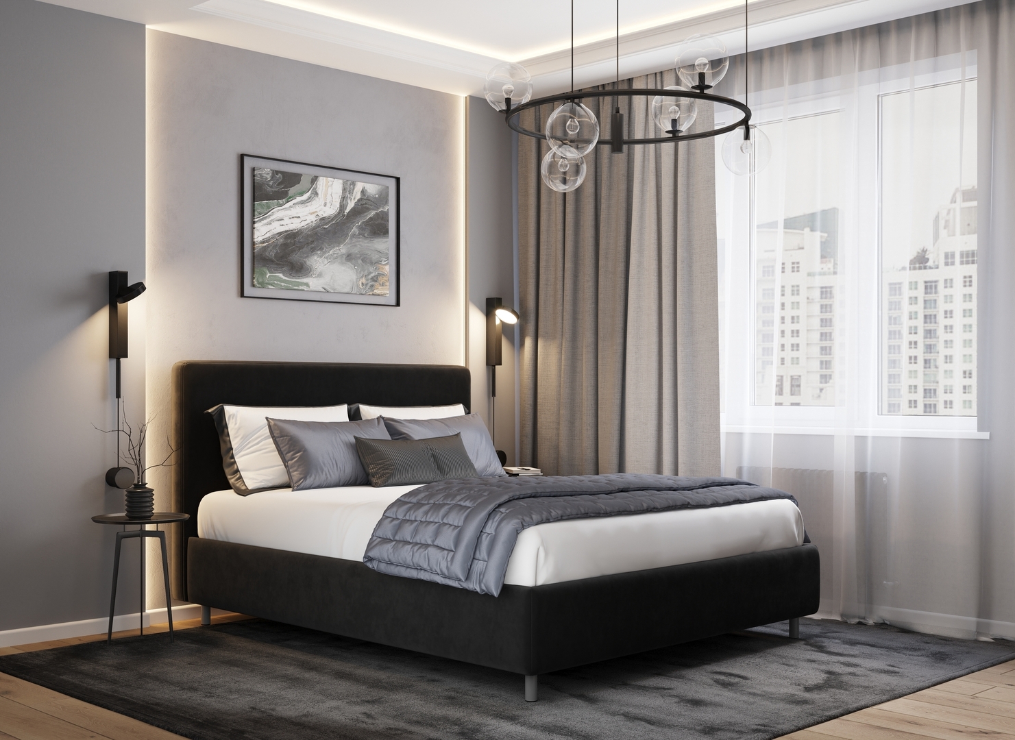Творческий подход к выбору обивочного материала меняет образ дизайна. Велюр за счет своей бархатистой фактуры привносит в пространство шика и утонченности. Шенилл дополняет оформление спальни природными текстурами, создавая атмосферу тепла и уюта.